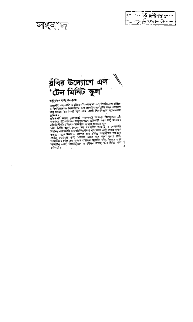 রবির উদ্যোগে এল ‘টেন মিনিট স্কুল’