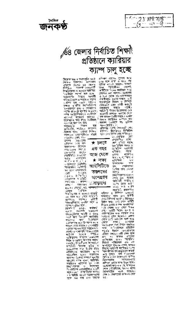 ৬৪ জেলার নির্বাচিত শিক্ষা প্রতিাষ্ঠানে ক্যারিয়ার ক্যাম্প চালু হচ্ছে Published on Newspaper দৈনিক জনকণ্ঠ Category ICT Education Download