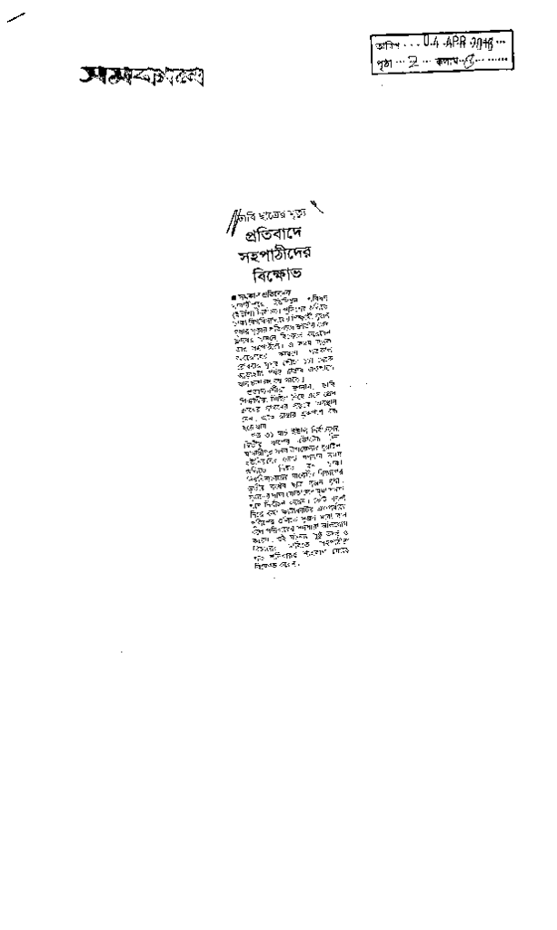 ঢাবি ছাত্রের মৃত্যু : প্রতিবাদে সহপাঠীদের বিক্ষোভ Published on Newspaper দৈনিক সমকাল Category General Education General Education Higher Education Public Download