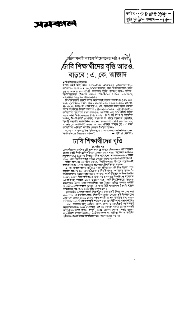 ঢাবি শিক্ষার্থীদের বৃত্তি আরও বাড়বে : এ.কে. আজাদ Published on Newspaper দৈনিক সমকাল Category General Education General Education Higher Education Public Download