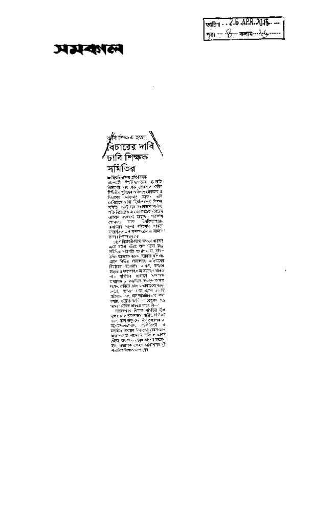 বিচারের দাবি ঢাবি শিক্ষক সমিতির Published on Newspaper দৈনিক সমকাল Category General Education General Education Higher Education Public Download