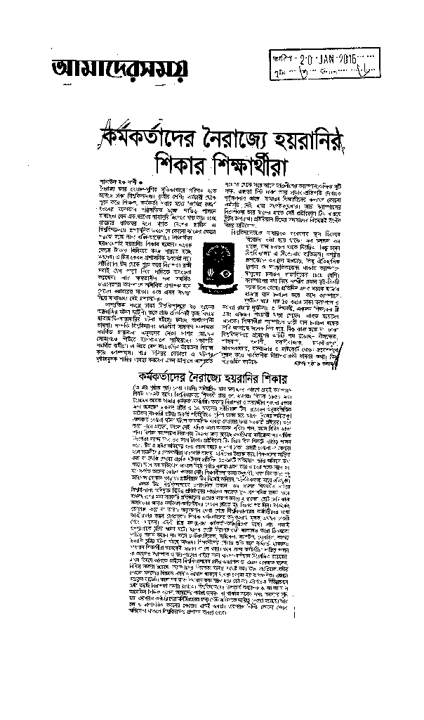 কর্মকর্তাদের নৈরাজ্য হয়রানির শিকার শিক্ষার্থীরা Published on Newspaper দৈনিক আমাদের সময় Category General Education General Education Higher Education Public Download