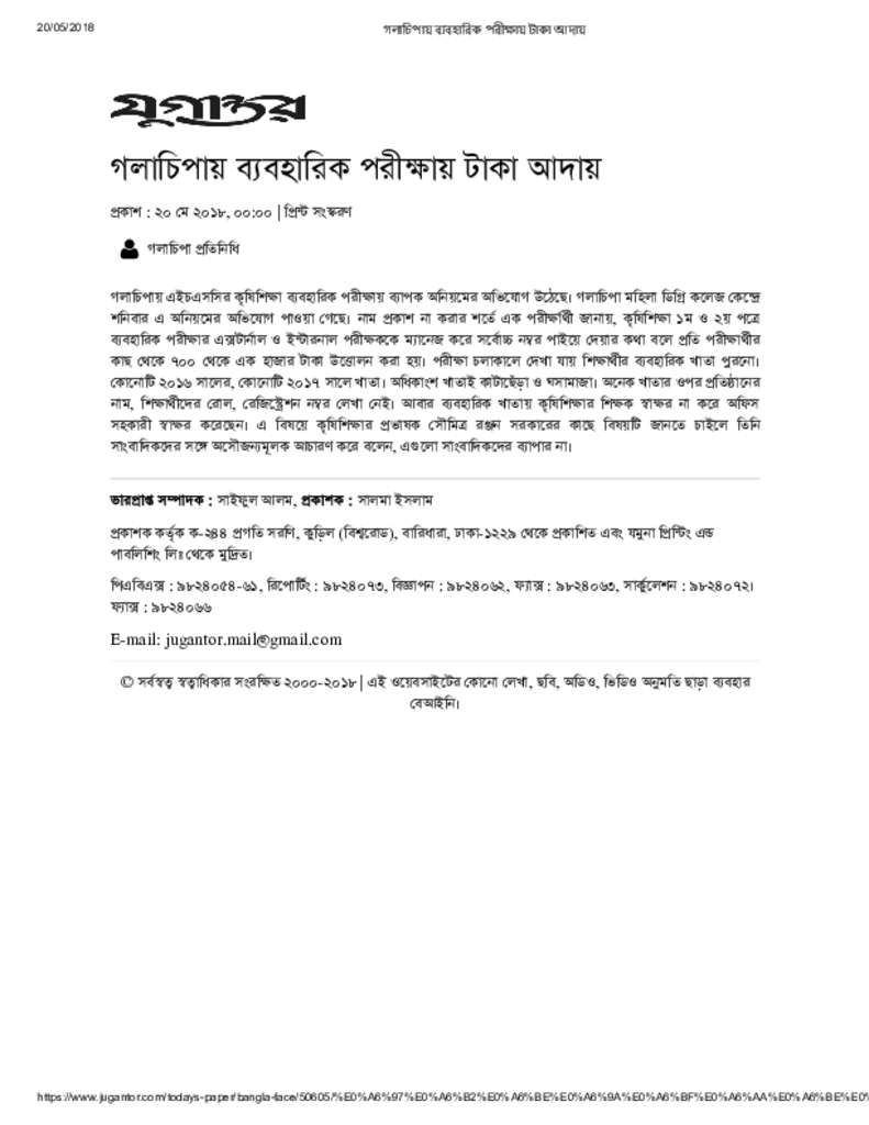 গলাচিপায় ব্যবহারিক পরীক্ষায় টাকা আদায় Published on Newspaper দৈনিক যুগান্তর Category Public Examination Public Examination HSC Download