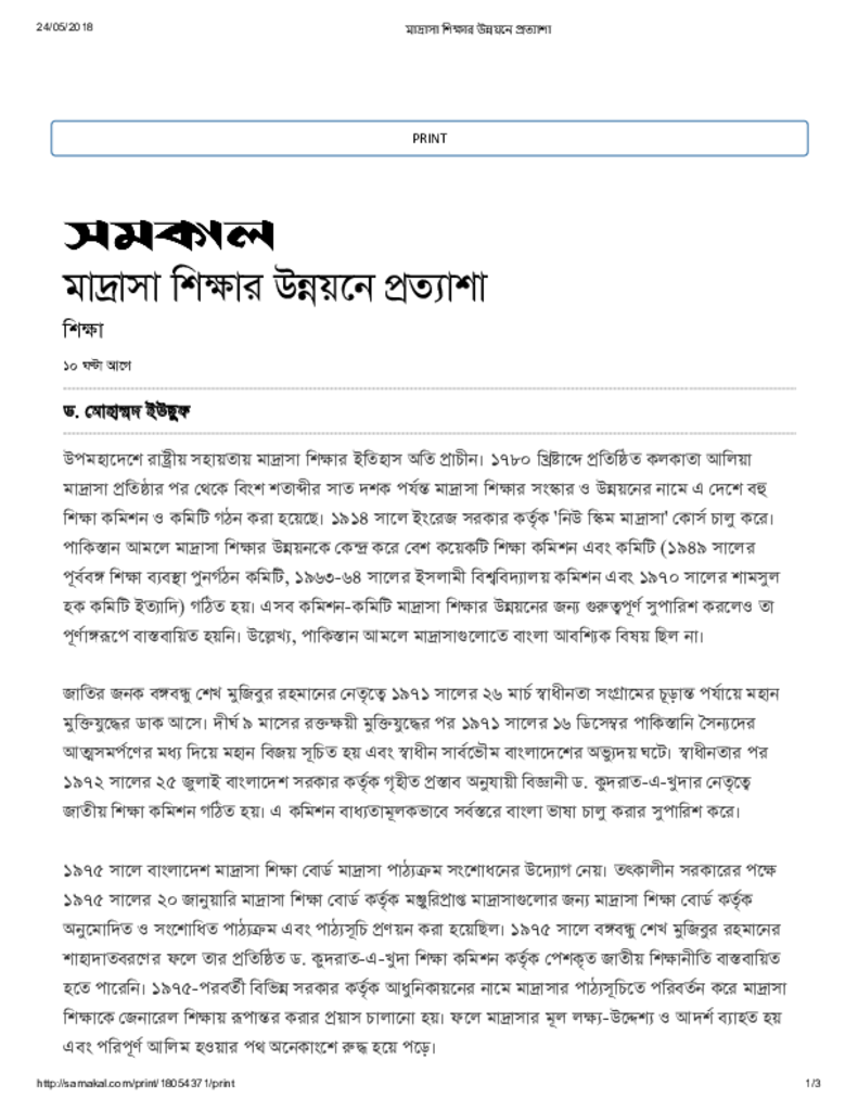 মাদ্রাসা শিক্ষার উন্নয়নে প্রত্যাশা Published on Newspaper দৈনিক কালের কন্ঠ Category Madrasah Education Download