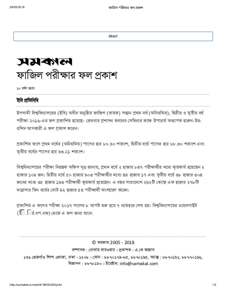 ফাজিল পরীক্ষার ফল প্রকাশ Published on Newspaper দৈনিক সমকাল Category Madrasah Education Madrasah Education Alia Download