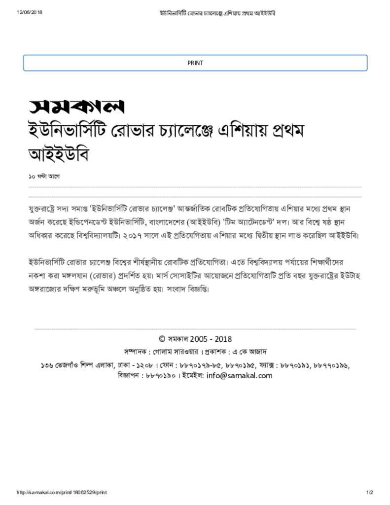 ইউনিভার্সিটি রোভার চ্যালেঞ্জে এশিয়ায় প্রথম আইইউবি Published on Newspaper দৈনিক সমকাল Category General Education General Education Higher Education Private Download
