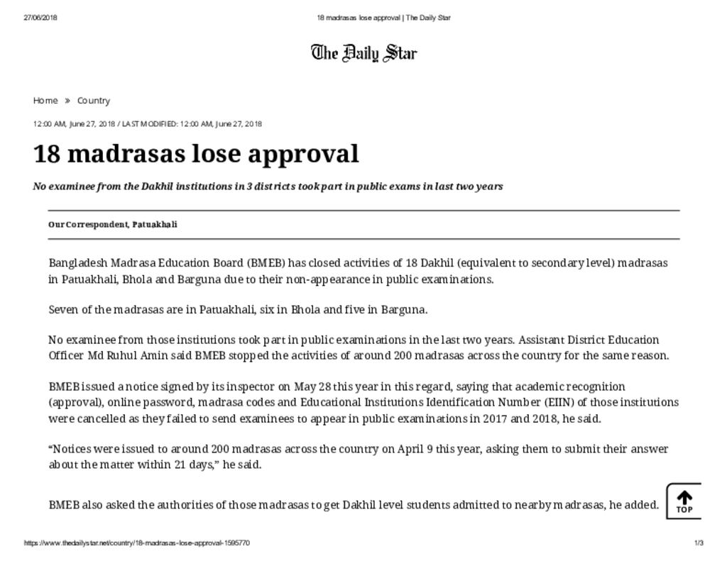 18 madrasas lose approval _ The Daily Star Published on Newspaper The Daily Star Category Madrasah Education Madrasah Education Alia Download