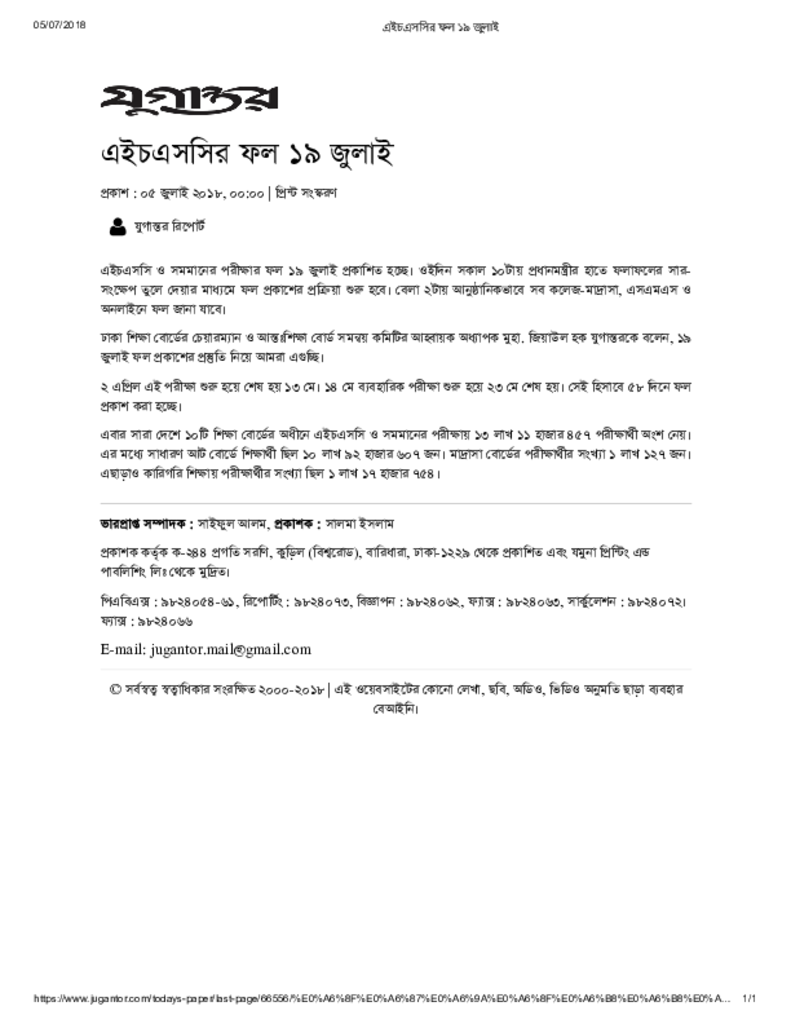 এইচএসসির ফল ১৯ জুলাই Published on Newspaper দৈনিক যুগান্তর Category Public Examination Public Examination HSC Download