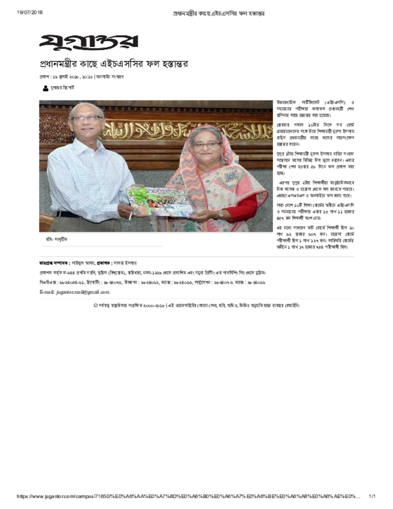 প্রধানমন্ত্রীর কাছে এইচএসসির ফল হস্তান্তর Published on Newspaper দৈনিক যুগান্তর Category Public Examination Public Examination HSC Download