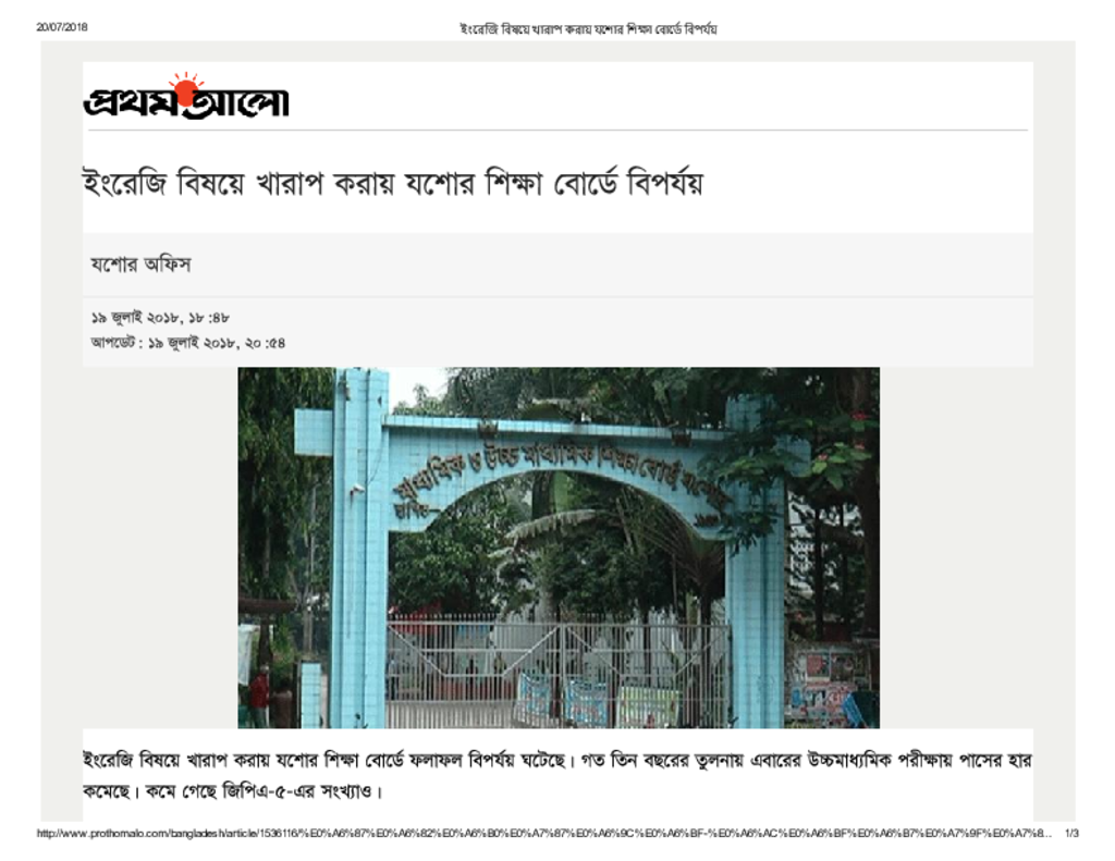 ইংরেজি বিষয়ে খারাপ করায় যশোর শিক্ষা বোর্ডে বিপর্যয়