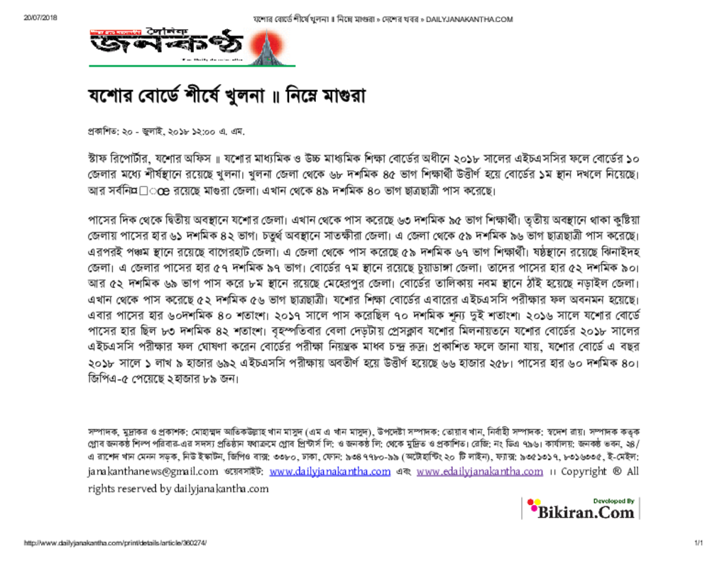যশোর বোর্ডে শীর্ষে খুলনা ॥ নিম্নে মাগুরা » দেশের খবর » DAILYJANAKANTHA Published on Newspaper দৈনিক জনকণ্ঠ Category Public Examination Public Examination HSC Download