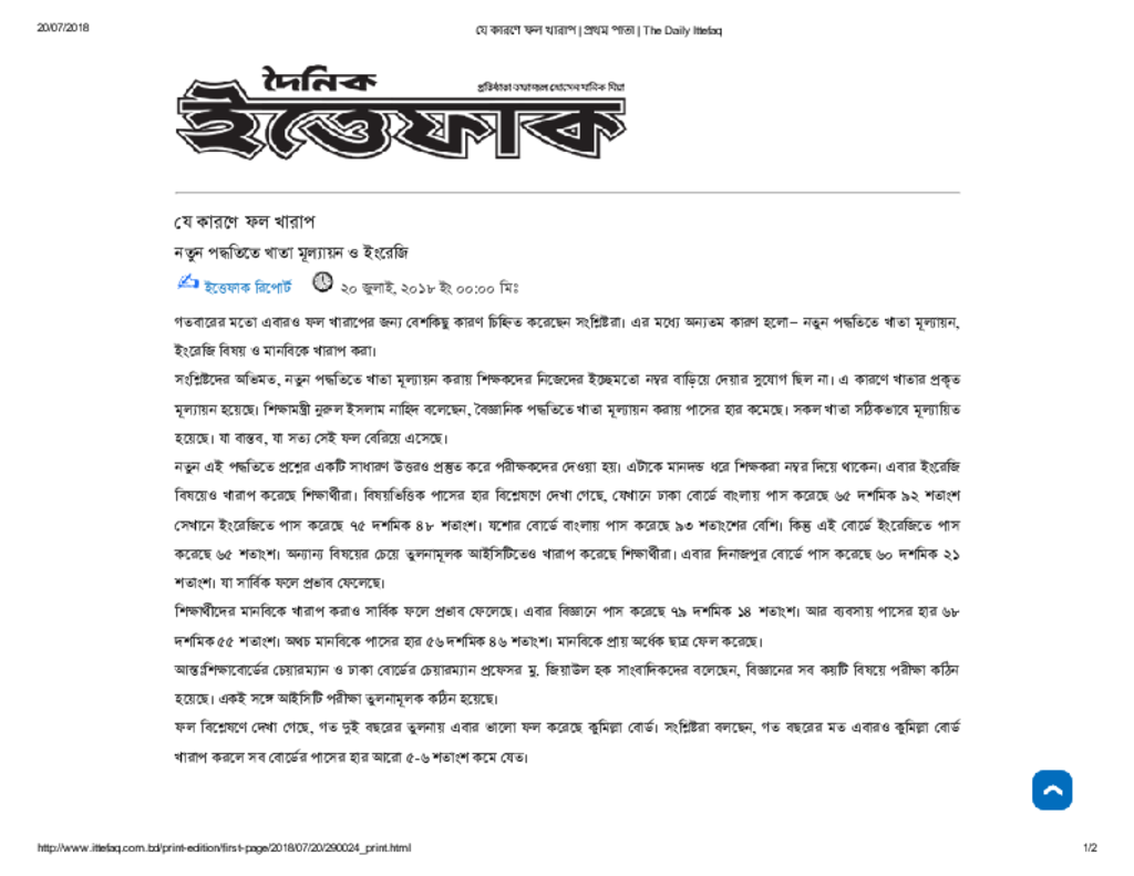 যে কারণে ফল খারাপ _ প্রথম পাতা _ The Daily Ittefaq Published on Newspaper দৈনিক ইত্তেফাক Category Public Examination Public Examination HSC Download