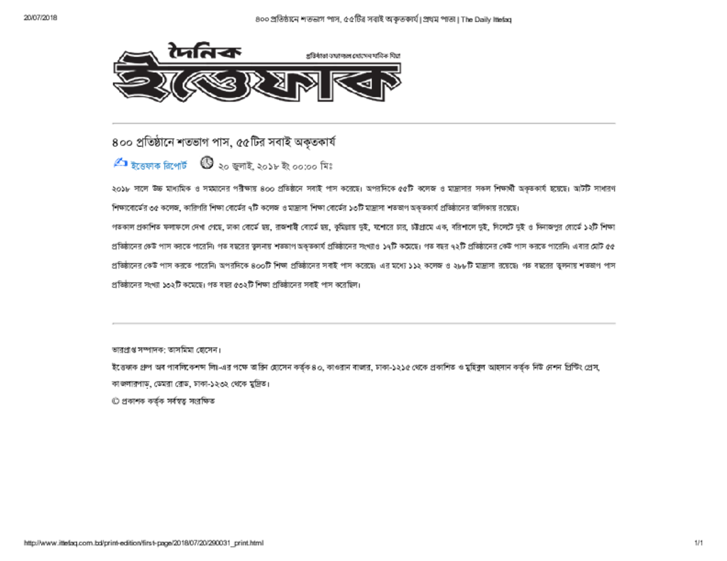 ৪০০ প্রতিষ্ঠানে শতভাগ পাস, ৫৫টির সবাই অকৃতকার্য _ প্রথম পাতা _ The Daily Ittefaq Published on Newspaper দৈনিক ইত্তেফাক Category Public Examination Public Examination HSC Download