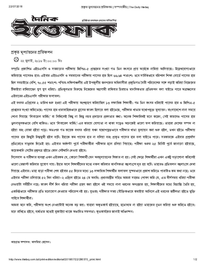 প্রকৃত মূল্যায়নের প্রতিফলন _ সম্পাদকীয় _ The Daily Ittefaq Published on Newspaper দৈনিক ইত্তেফাক Category Personal Opinion / Discussion / Commentary Personal Speech / Discussion / Comentary Secondary and Higher Secondary Education Download