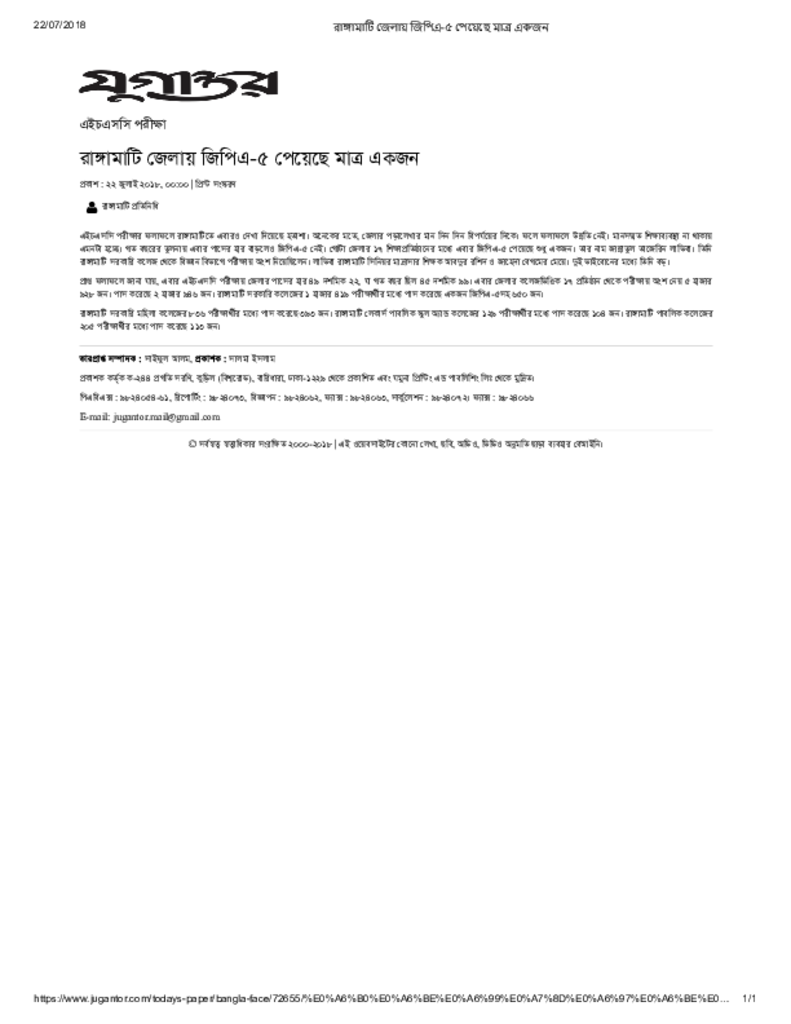 রাঙ্গামাটি জেলায় জিপিএ-৫ পেয়েছে মাত্র একজন