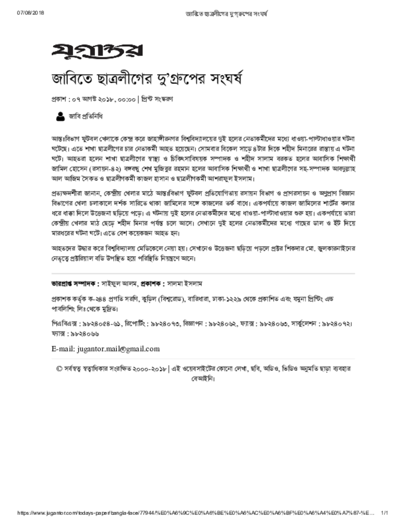 জাবিতে ছাত্রলীগের দু’গ্রুপের সংঘর্ষ