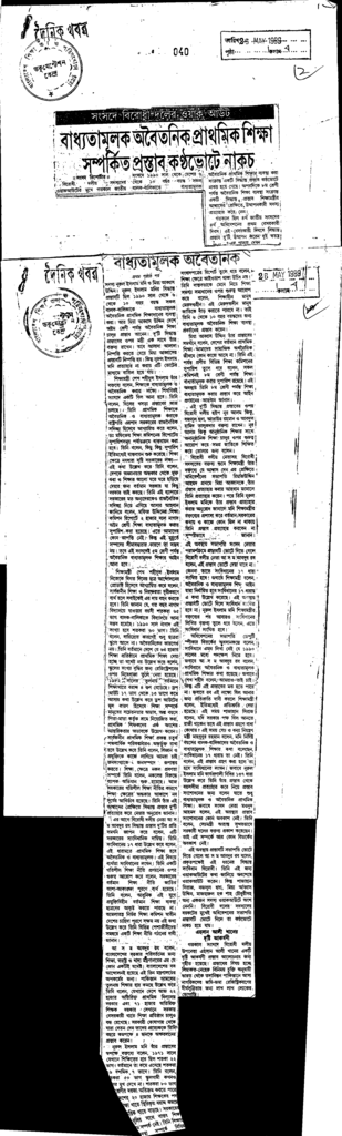 বাধ্যতামূলক অবৈতনিক প্রাথমিক শিক্ষা সম্পর্কিত প্রস্তব কন্ঠভোটে নাকচ Published on Newspaper দৈনিক খবর Category General Education General Education Download