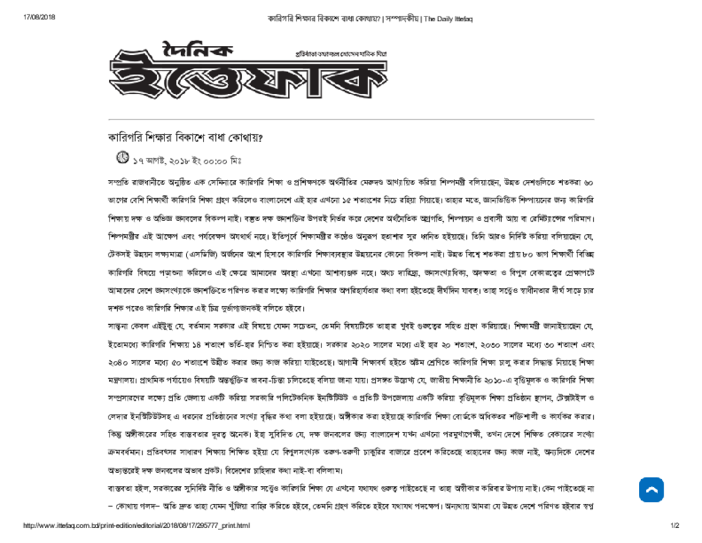 কারিগরি শিক্ষার বিকাশে বাধা কোথায়_ _ সম্পাদকীয় _ The Daily Ittefaq Published on Newspaper দৈনিক ইত্তেফাক Category Technical and Vocational Education Download