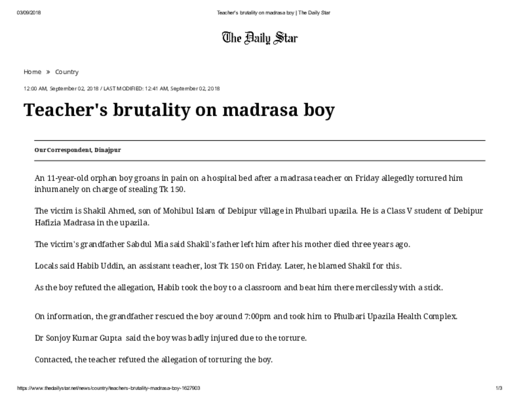 Teacher's brutality on madrasa boy _ The Daily Star Published on Newspaper The Daily Star Category Madrasah Education Download
