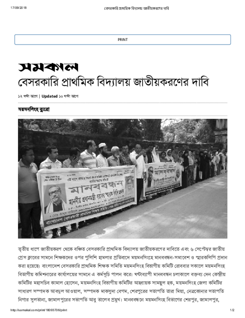 বেসরকারি প্রাথমিক বিদ্যালয় জাতীয়করণের দাবি Published on Newspaper দৈনিক সমকাল Category Madrasah Education Download