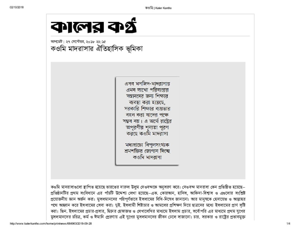 কওমি মাদরাসার ঐতিহাসিক ভূমিকা Published on Newspaper দৈনিক কালের কন্ঠ Category Madrasah Education Download