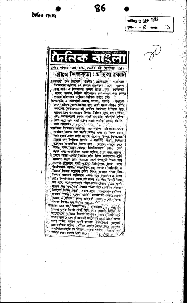 গ্রামে শিক্ষকতা: মহিলা কোটা