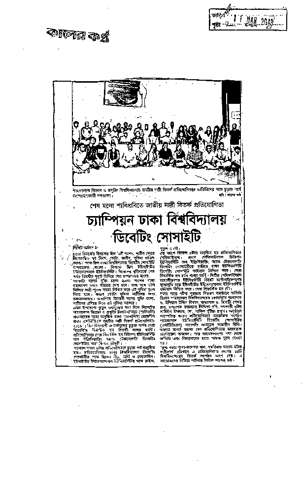 চ্যাম্পিয়ন ঢাকা বিশ্ববিদ্যালয় ডিবেটিং সোসাইটি Published on Newspaper দৈনিক কালের কন্ঠ Category General Education General Education Higher Education Private Download