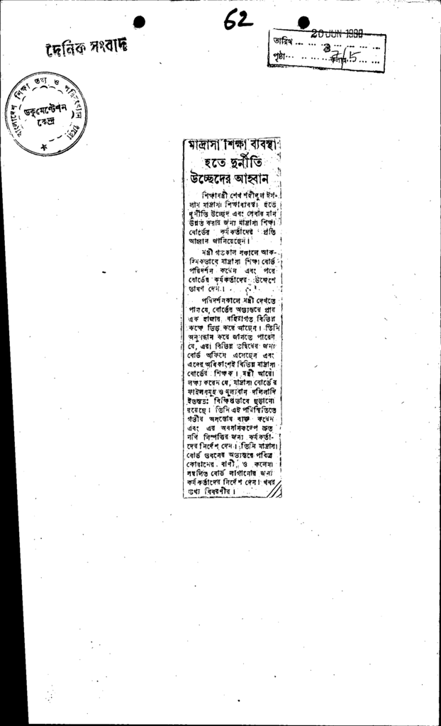 মাদ্রাসা শিক্ষা ব্যবস্থা হইতে দুর্নীতি উচ্ছেদের আহবান