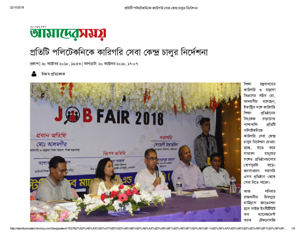 প্রতিটি পলিটেকনিকে কারিগরি সেবা কেন্দ্র চালুর নির্দেশনা Published on Newspaper দৈনিক আমাদের সময় Category Technical and Vocational Education Download