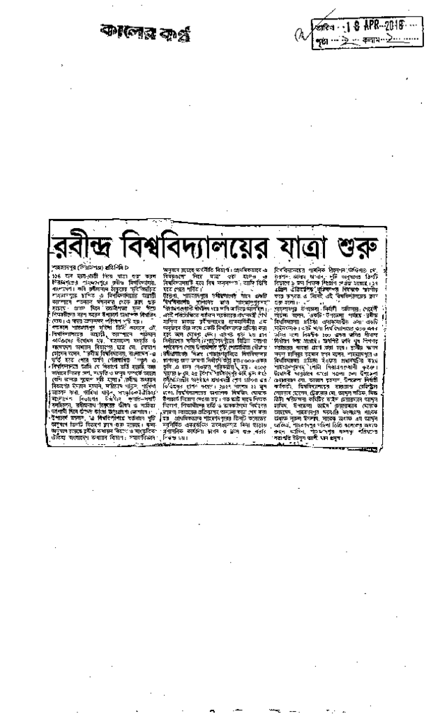রবীন্দ্র বিশ্ববিদ্যালয়ের যাত্রা শুরু Published on Newspaper দৈনিক কালের কন্ঠ Category General Education General Education Higher Education Private Download