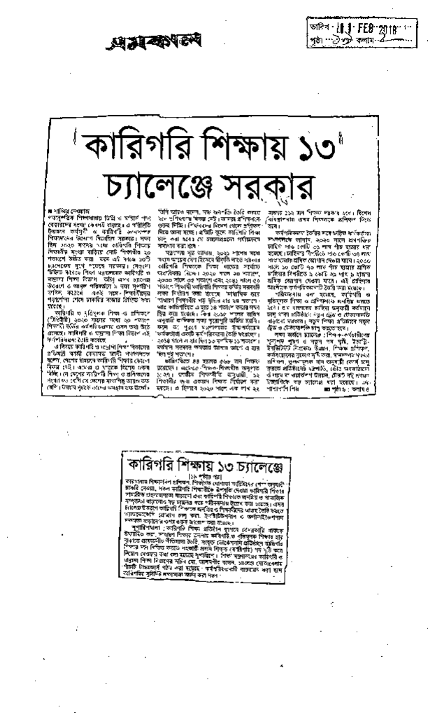 কারিগরি শিক্ষায় ১৩ চ্যালেঞ্জে সরকার Published on Newspaper দৈনিক সমকাল Category Technical and Vocational Education Download