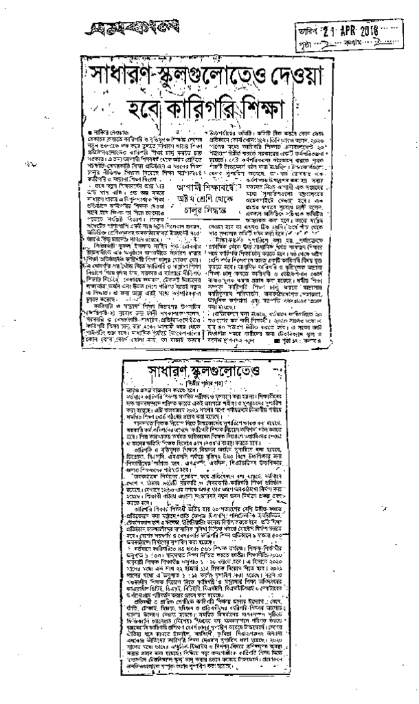 সাধারণ স্কুলগুলোতেও দেওয়া হবে কারিগরি শিক্ষা Published on Newspaper দৈনিক সমকাল Category Technical and Vocational Education Download