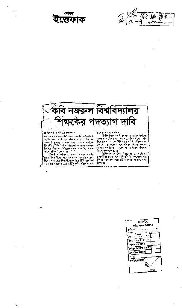 কবি নজরুল ইসলাম বিশ্ববিদ্যালয় শিক্ষকের পদত্যাগ দাবি Published on Newspaper দৈনিক ইত্তেফাক Category General Education General Education Higher Education Private Download