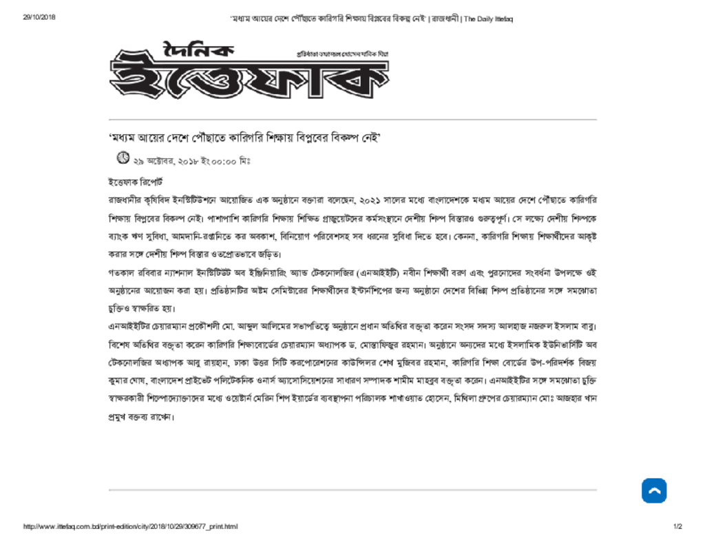 ‘মধ্যম আয়ের দেশে পৌঁছাতে কারিগরি শিক্ষায় বিপ্লবের বিকল্প নেই’ _ রাজধানী _ The Daily Ittefaq Published on Newspaper দৈনিক জনকণ্ঠ Category Technical and Vocational Education Download