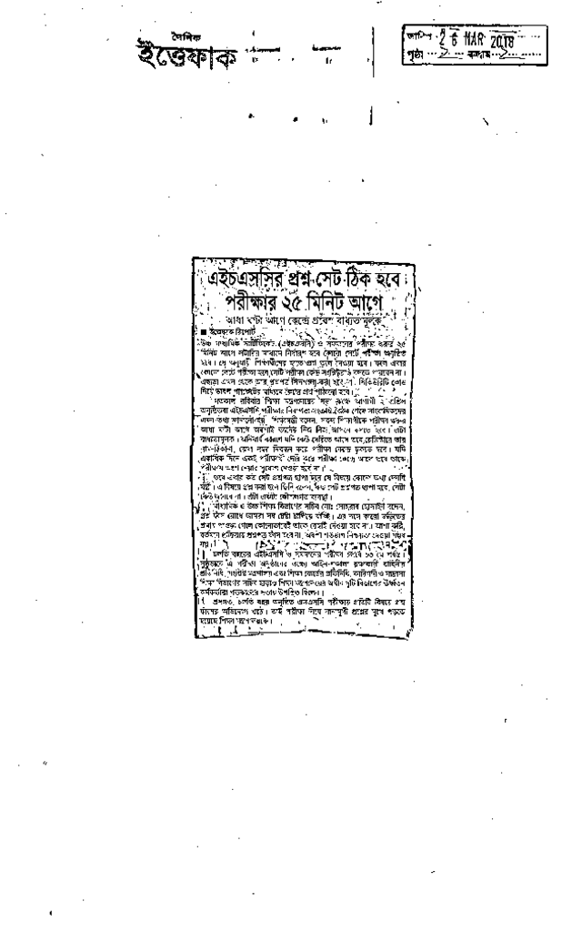 এইচএসসির প্রশ্ন সেট ঠিক হবে পরীক্ষার ২৫ মিনিট আগে Published on Newspaper দৈনিক ইত্তেফাক Category Public Examination Public Examination HSC Download