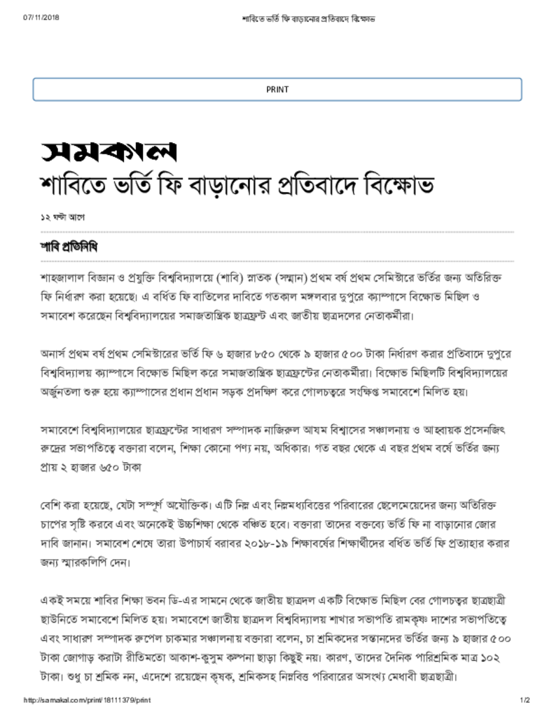 শাবিতে ভর্তি ফি বাড়ানোর প্রতিবাদে বিক্ষোভ Published on Newspaper দৈনিক সমকাল Category Science Education Download