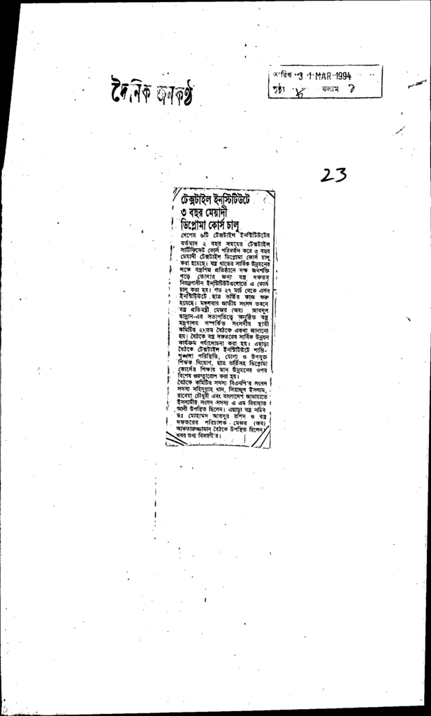 টেক্সটাইল ইনস্টিটিউট ৩ বছর মেয়াদী ডিপ্লোমা কোর্স