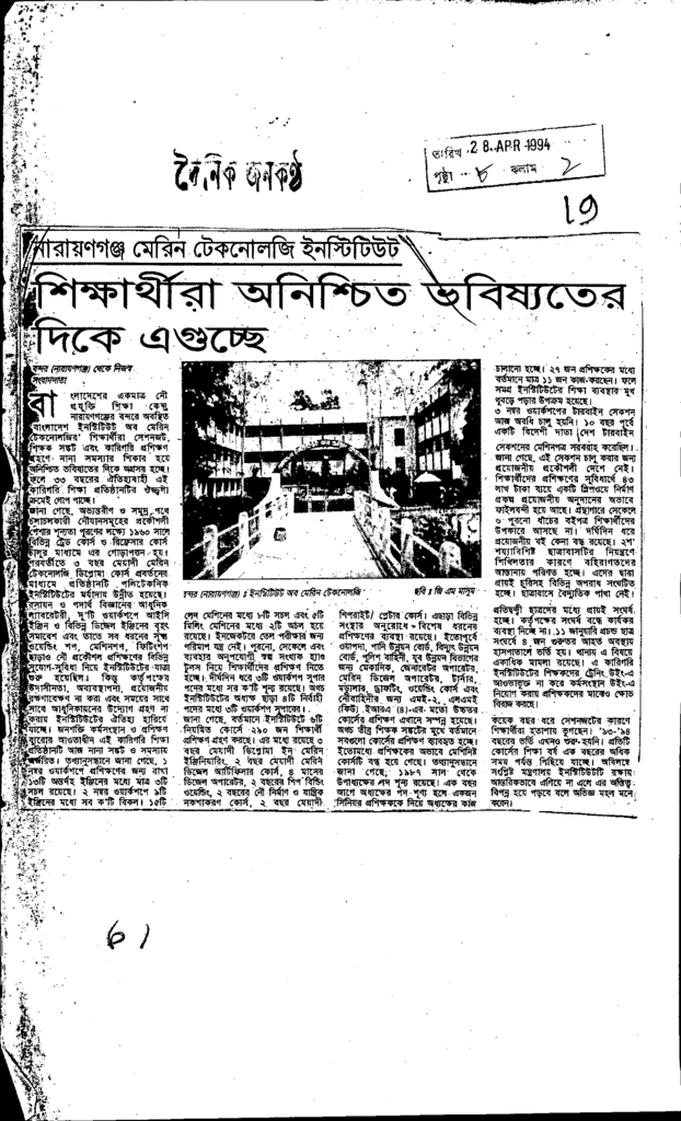 নারায়ণগঞ্জ মেরিন টেকনোলজি ইনস্টিটিউট শিক্ষাথীর্রা অনিশ্চিত ভবিষ্যতের দিকে এগুচ্ছে Published on Newspaper দৈনিক জনকণ্ঠ Category Professional Education Professional Education Engineering Download