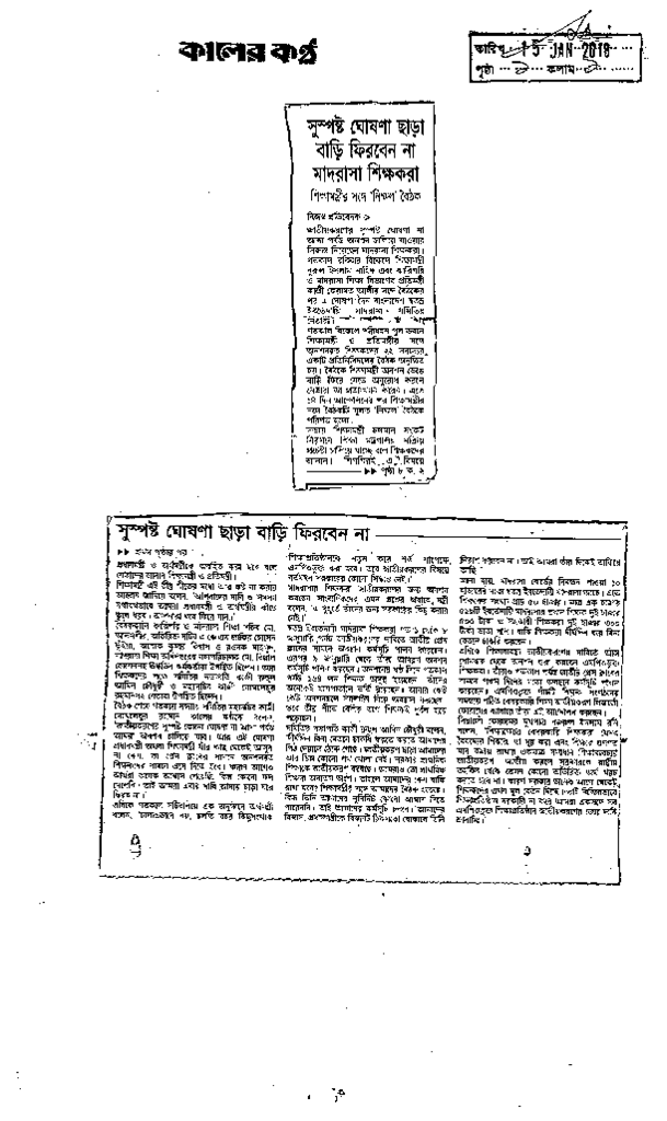 সুষ্পষ্ট ঘোষণা ছাড়া বাড়ি ফিরবেন না মাদ্রাসা শিক্ষকরা Published on Newspaper দৈনিক কালের কন্ঠ Category Madrasah Education Madrasah Education Alia Download