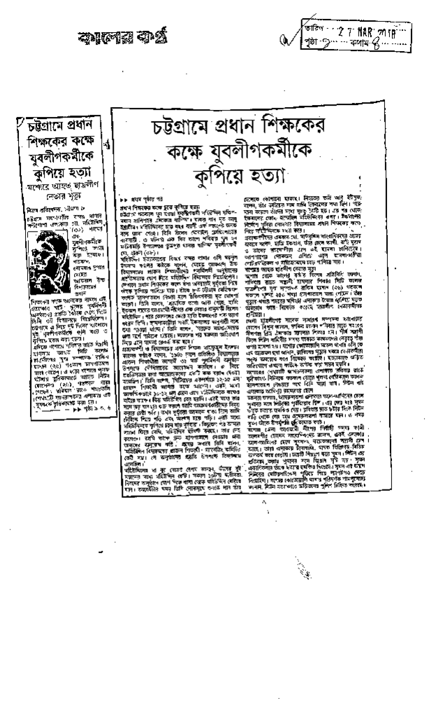 চট্রগ্রামে প্রধান শিক্ষকের কক্ষে যুবলীগ কর্মকে কুপিয়ে হত্যা Published on Newspaper দৈনিক কালের কন্ঠ Category Campus Terrorism Download