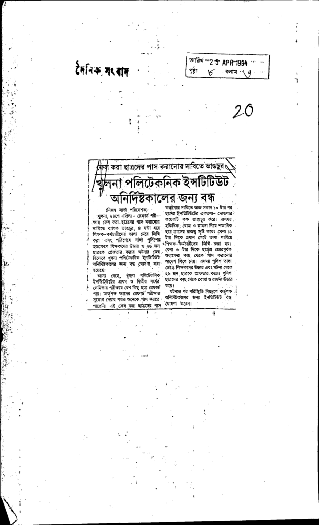 ফেল করা ছাত্রদের পাস করানোর দাবিতে ভাঙচুর খুলনা পলিাটেকনিক ইন্সটিটিউট অনির্দষ্টকালের জন্য বন্ধ Published on Newspaper দৈনিক সংবাদ Category Technical and Vocational Education Download