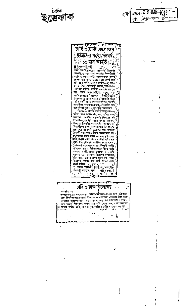 ঢাবি ও ঢাকা কলেজের ছাত্রদের মধ্যে সংঘর্ষ ১০ জন আহত