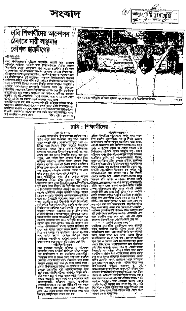 ঢাবি শিক্ষার্খীদের আন্দোলন ঠেকাতে নারী লাঞ্ছনার কৌশল ছাত্রলীগের Published on Newspaper দৈনিক সংবাদ Category Campus Terrorism Download