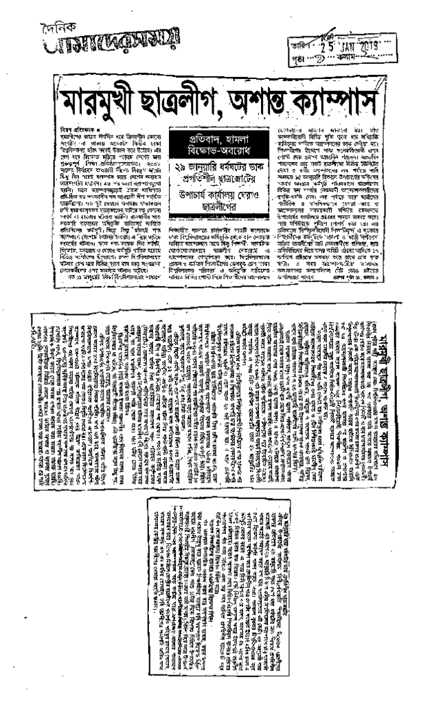 মারমুখী ছাত্রলীগ, অশান্ত ক্যাম্পাস Published on Newspaper দৈনিক আমাদের সময় Category Campus Terrorism Download