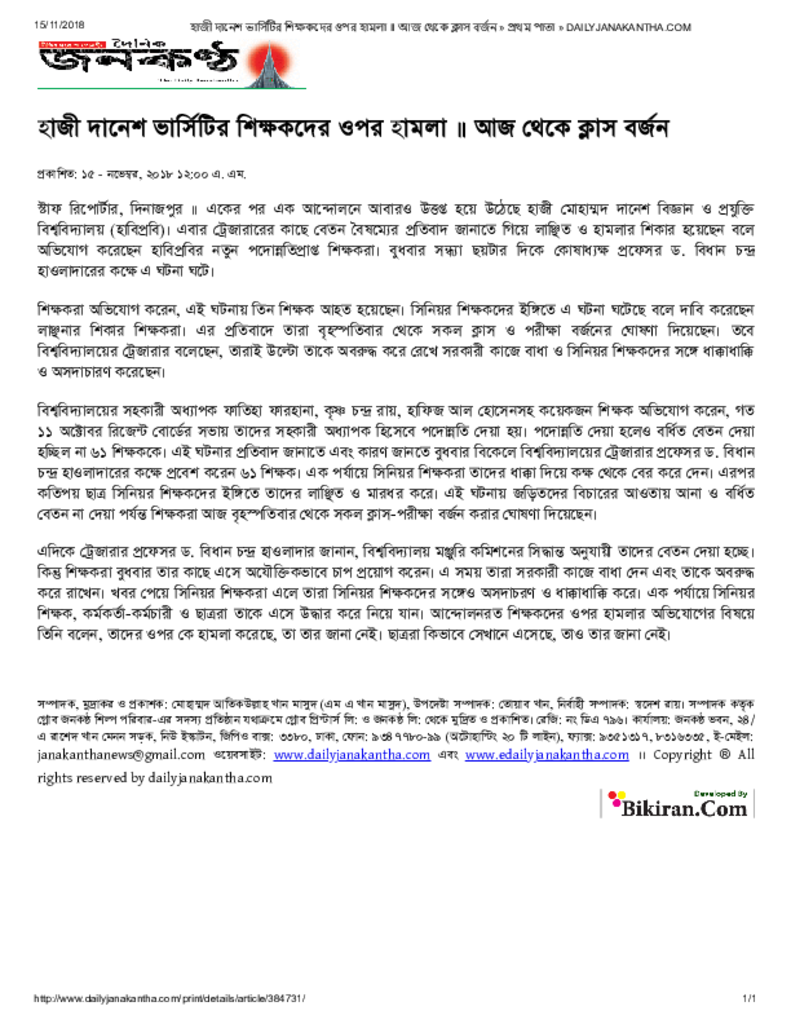হাজী দানেশ ভার্সিটির শিক্ষকদের ওপর হামলা ॥ আজ থেকে ক্লাস বর্জন » প্রথম পাতা » DAILYJANAKANTHA.COM Published on Newspaper দৈনিক জনকণ্ঠ Category Science Education Download