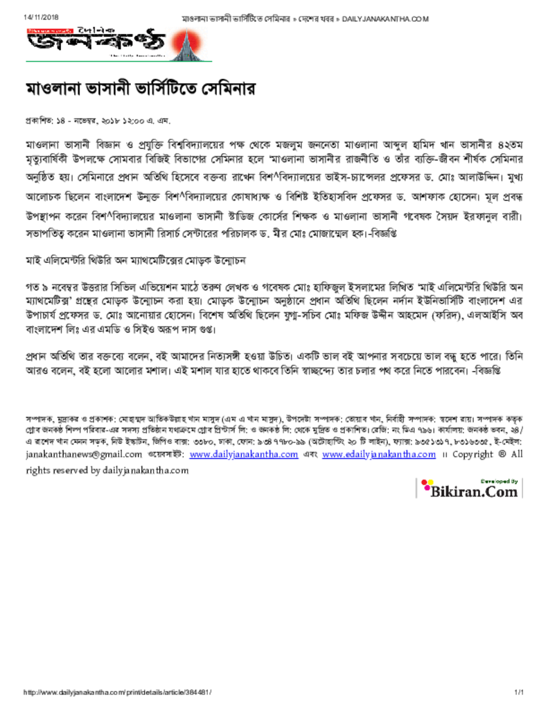 মাওলানা ভাসানী ভার্সিটিতে সেমিনার » দেশের খবর » DAILYJANAKANTHA.COM Published on Newspaper দৈনিক জনকণ্ঠ Category Science Education Download