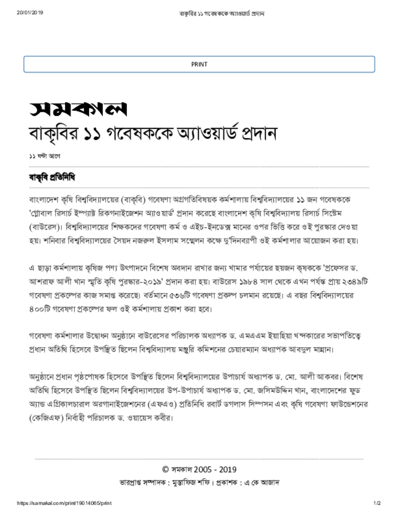 বাকৃবির ১১ গবেষককে অ্যাওয়ার্ড প্রদান Published on Newspaper দৈনিক সমকাল Category Science Education Download