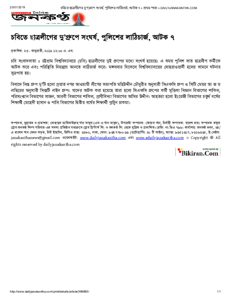 চবিতে ছাত্রলীগের দু’গ্রুপে সংঘর্ষ, পুলিশের লাঠিচার্জ, আটক ৭ » প্রথম পাতা » DAILYJANAKANTHA.COM Published on Newspaper দৈনিক জনকণ্ঠ Category Campus Terrorism Download