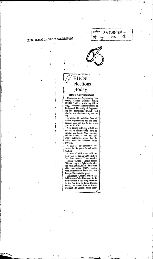 Eucsu elections today Published on Newspaper The Bangladesh Observer Category Professional Education Professional Education Engineering Download