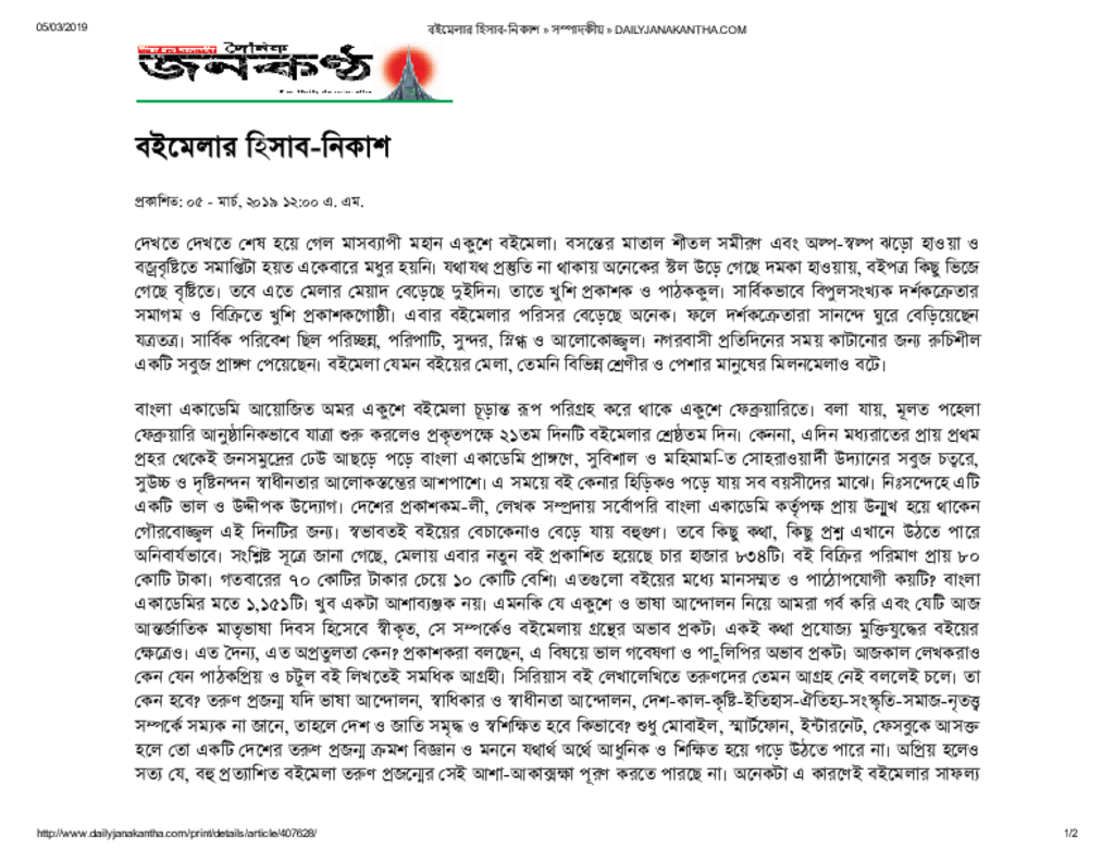 বইমেলার হিসাব-নিকাশ » সম্পাদকীয় » DAILYJANAKANTHA